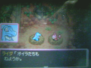 相棒は選択の中にいたワニノコで。だって愛着あるんだも。つか、一人称オイラなんですけど。あの、名付けが某バンドオレンジ髪ギタリストからもじった物なんで(笑)、オイラとかピッタリ過ぎて笑えるんですけど。……すいまっせんん!